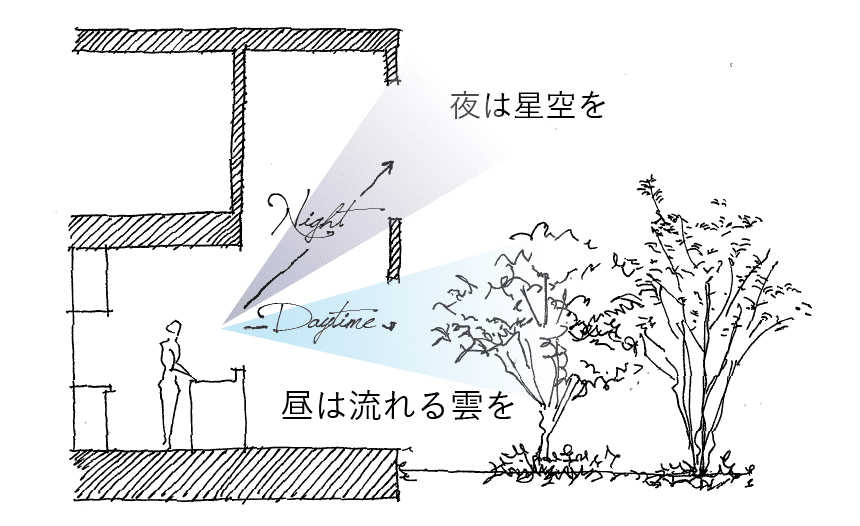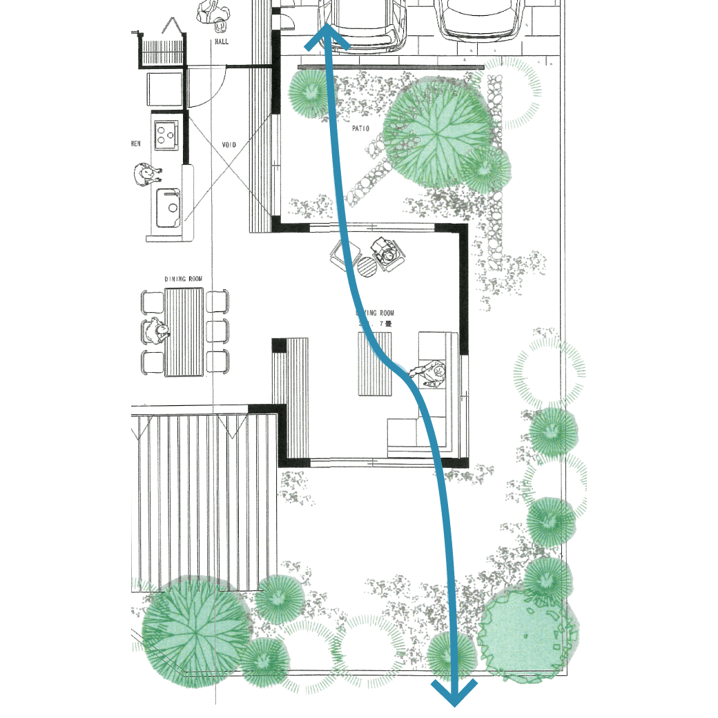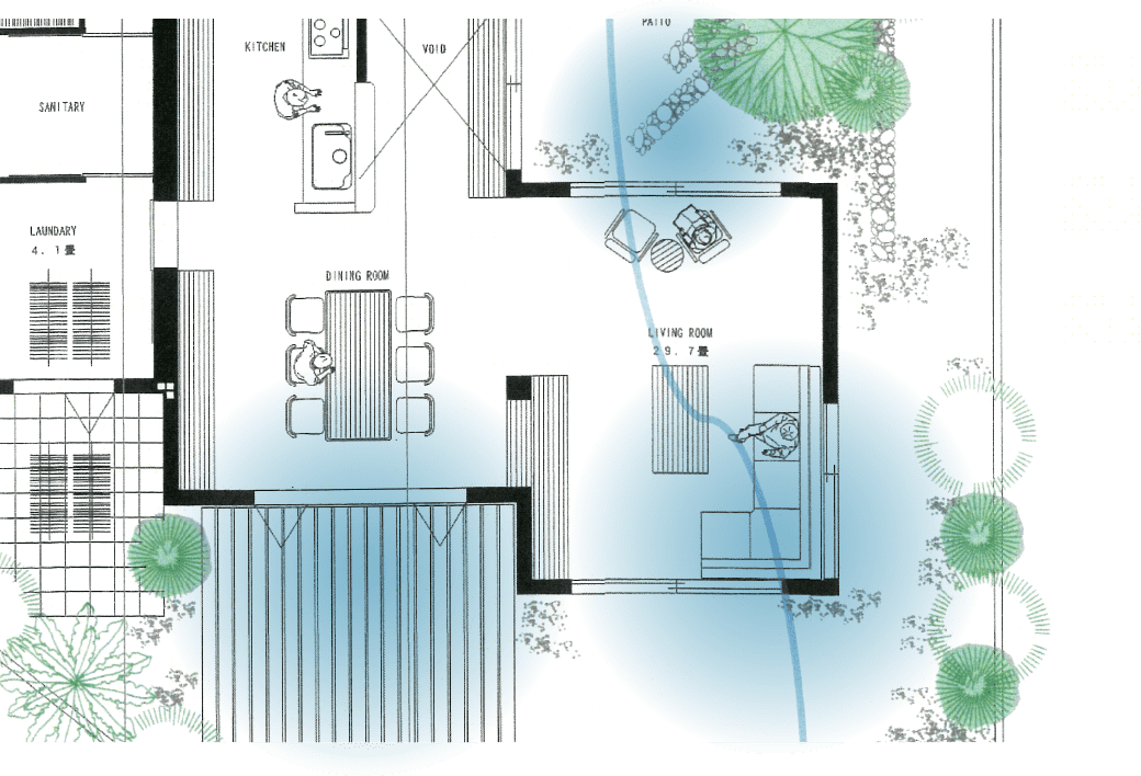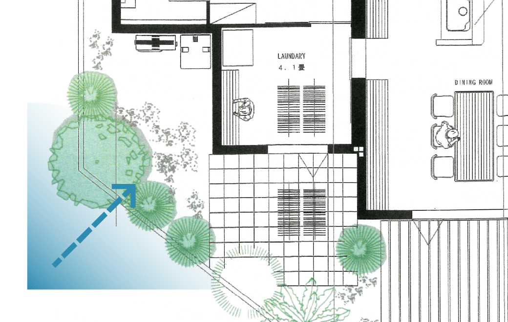 - 設備・サービスゾーンは庭・外部から見えない位置に配置